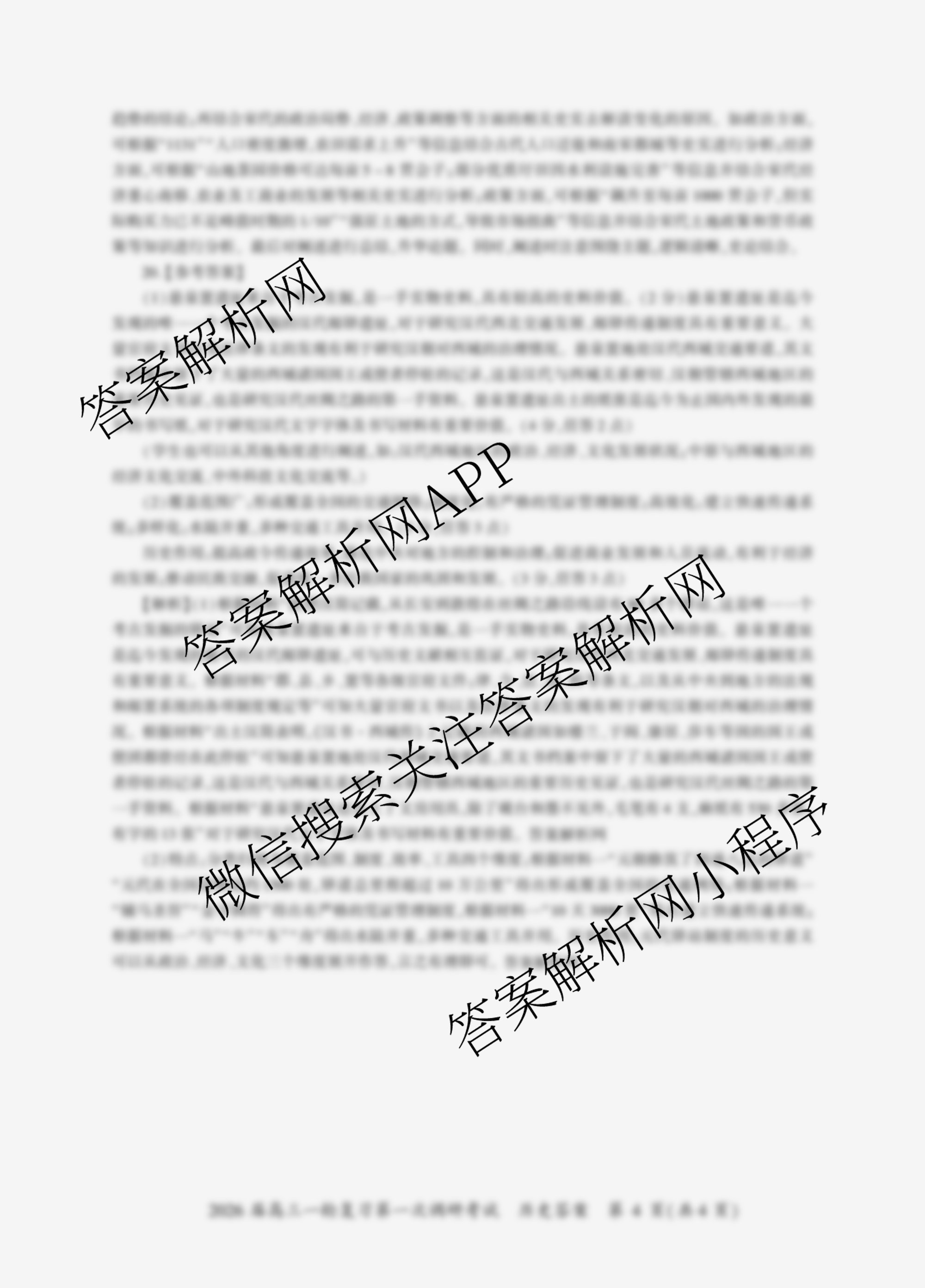 - 2026届(高三)百师联盟·一轮复习第一次调研考试(一)1历史(百N)答案